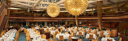 Two twin beds (convert to king). Sofa, armchair and coffee table. Desk and seat. Full bathroom with shower/whirlpool tub. Walk-in dressing area with vanity table, seat and ample closet space. Private large balcony with patio chairs and table. Priority check-in and boarding Priority dinner reservations for select specialty restaurants Priority main dining room time assignment (Early, Late or Your Time Dining) Priority debarkation at all ports Two large bottles of water Pillow-top mattresses Bathrobes Dedicated room steward Soft, cozy linens (Carnival Comfort Collection) In-room safe for valuables Plenty of closet and drawer space Television Stateroom climate control