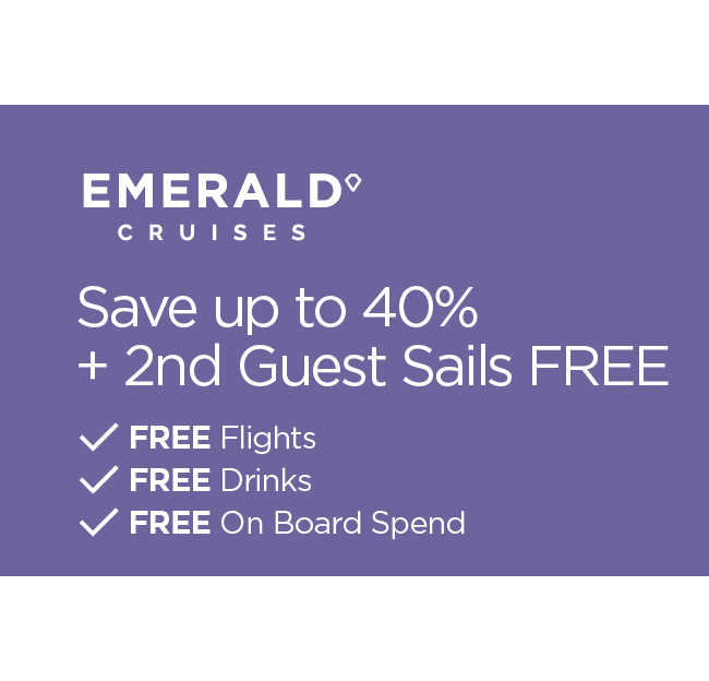 Emerald Cruises offer a modern-luxury all-inclusive river cruising experience to Europe and Asia’s most beautiful rivers. With floor to ceiling windows in the bars and lounges and a sun deck, you can enjoy the ever-changing scenery in style. On an Emerald cruise it’s all included; spacious and chic accommodation, enriching escorted tours and shore excursions, full board meals with complimentary drinks including beer, wine and soft drinks with every lunch and dinner and gratuities. Embark on a world of discovery with Emerald Cruises.
